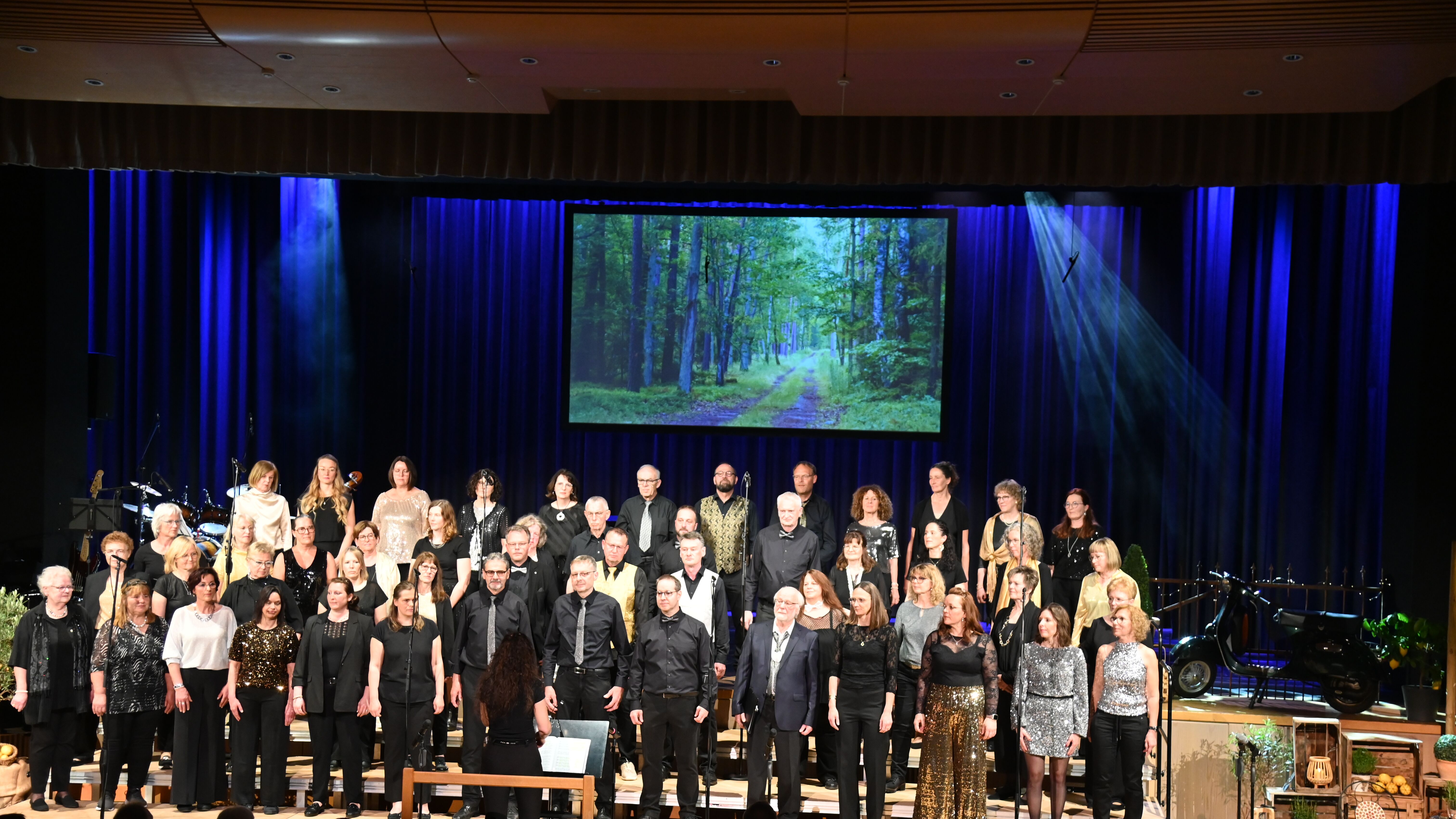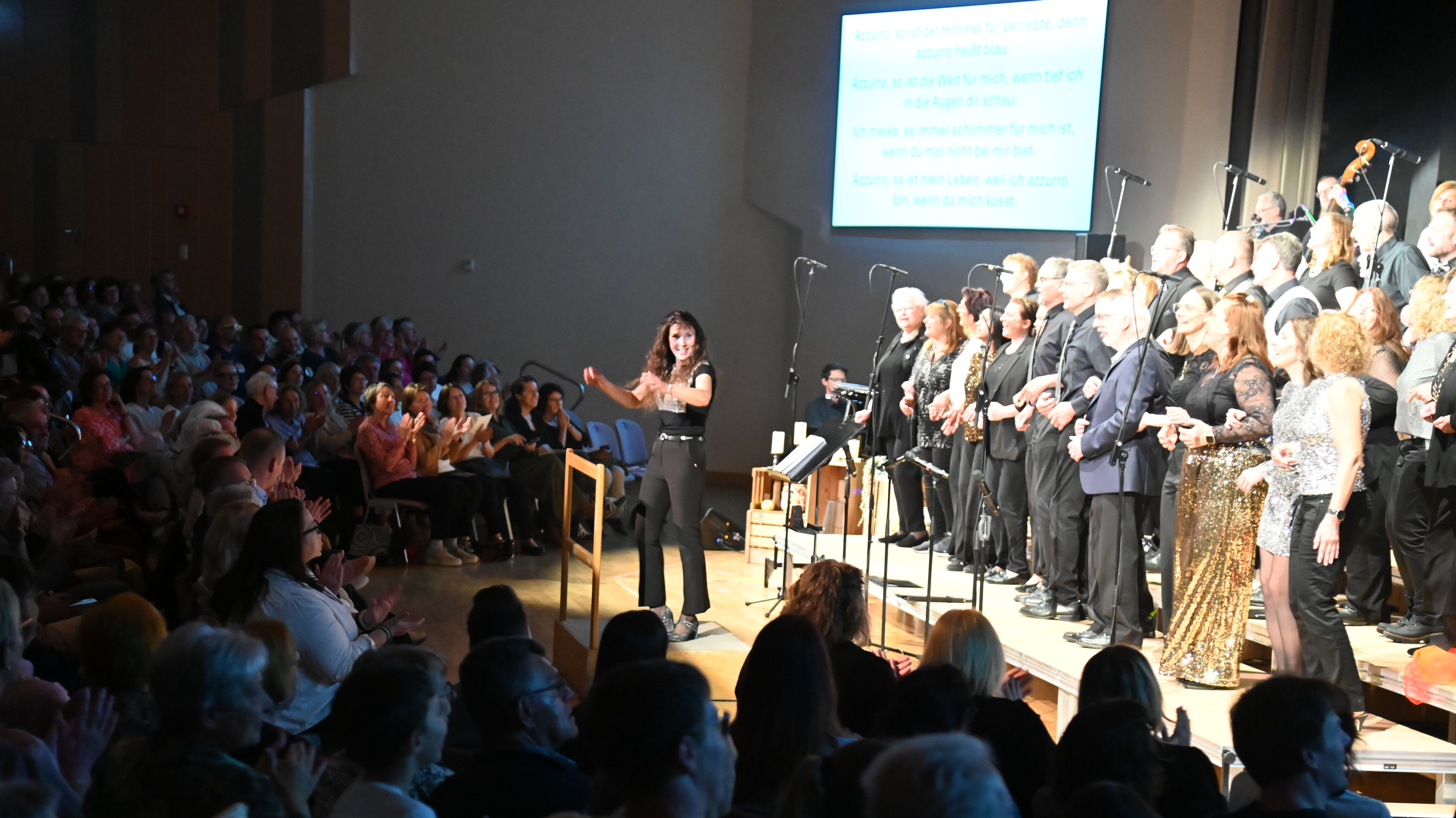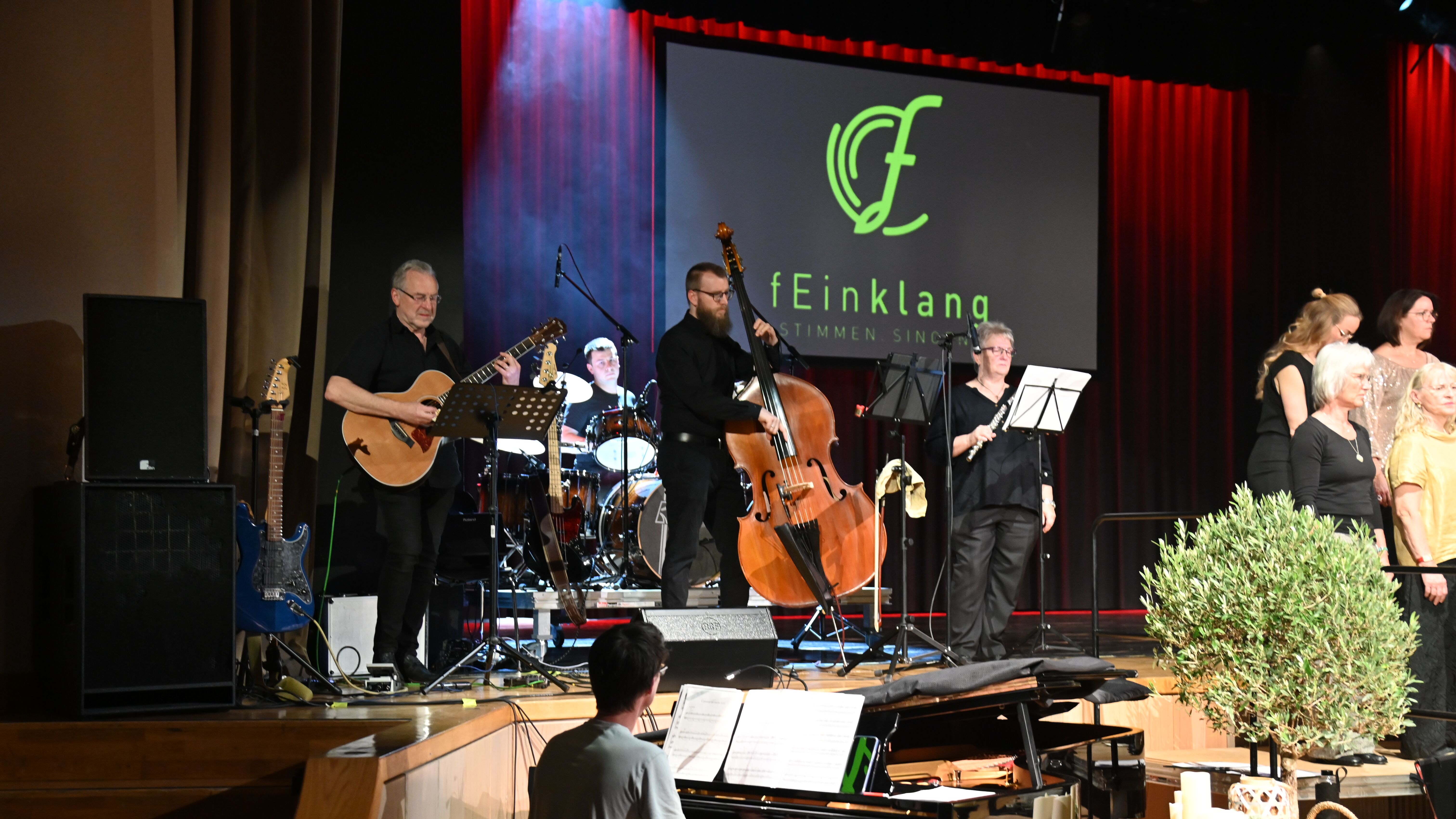 Chorleiterin Uli Marquart führte mit lustigen Tänzen, Percussions und Stimmübungen ein und verlangte dem fEinklang in insgesamt 6 Proben viel ab, aber immer mit Humor, guter Laune und Feingefühl. Toll, dass der Chor mit 45 Sängerinnen und Sängern fast vollzählig war.ei