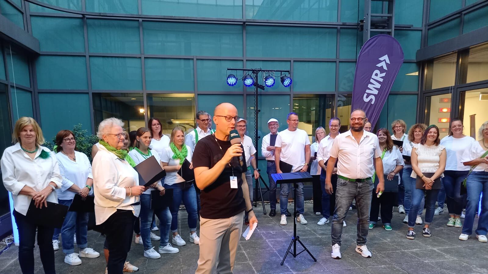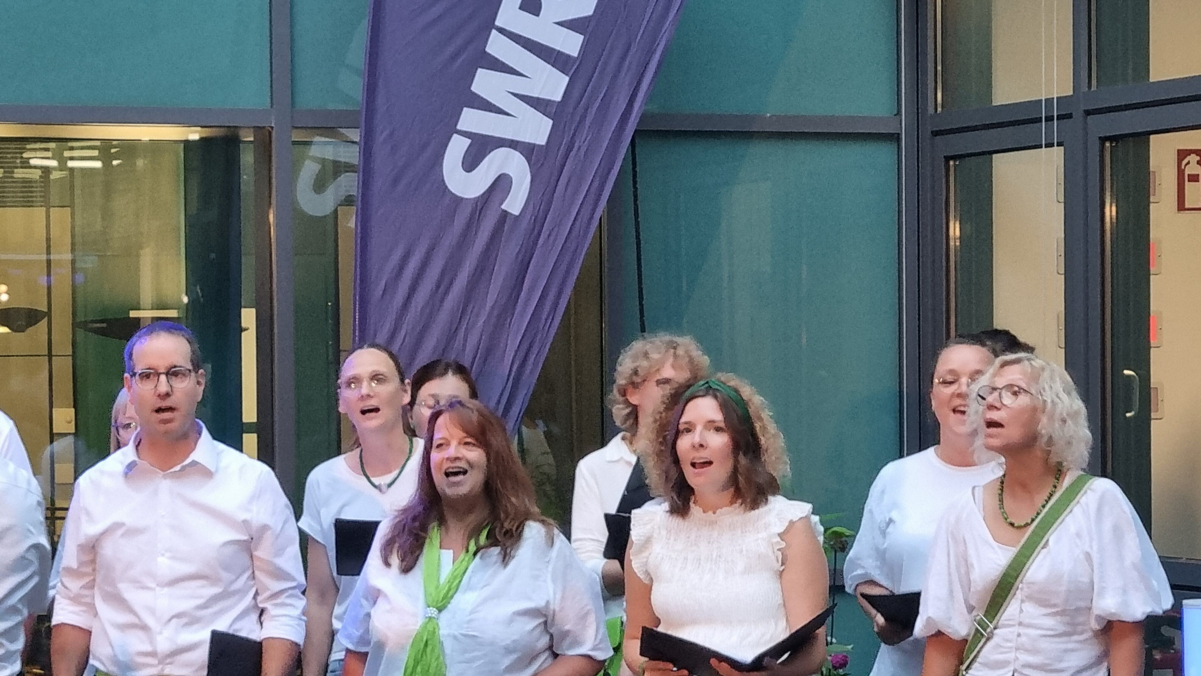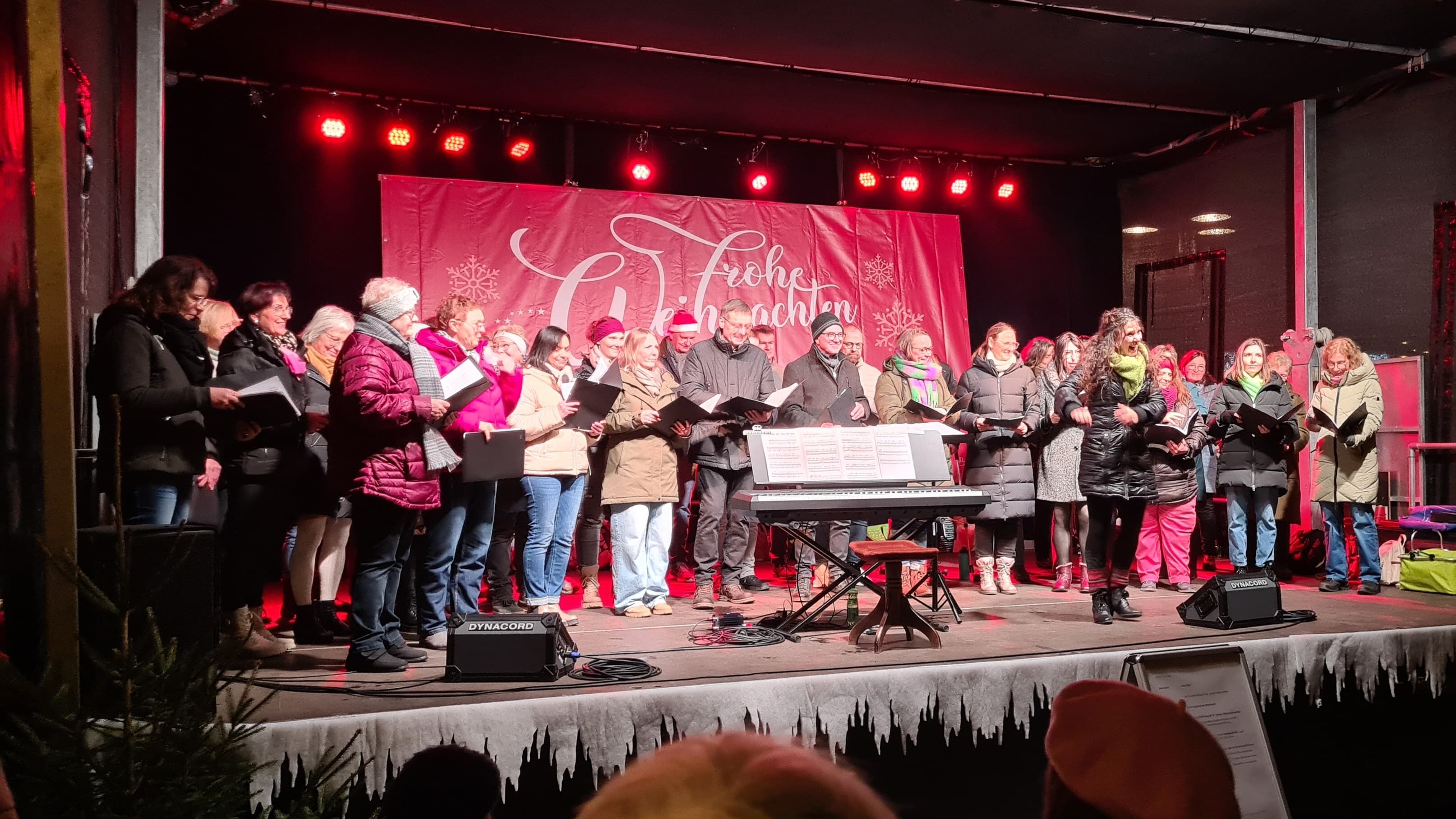 Chorleiterin Uli Marquart führte mit lustigen Tänzen, Percussions und Stimmübungen ein und verlangte dem fEinklang in insgesamt 6 Proben viel ab, aber immer mit Humor, guter Laune und Feingefühl. Toll, dass der Chor mit 45 Sängerinnen und Sängern fast vollzählig war.ei